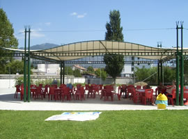 There is plenty of space, under tasteful man made canopies and seating areas along with a more popular dining area that resides under the protection of gracefully positioned willow trees. In each of the areas dining tables and chairs are provided, as is common place in Italy large groups and families combining tables together is standard practice so feel free to add more furniture where required. The facilites are very clean and hygenic with toilets, changing rooms and showers provided in all 3 of the major sections in the waterpark.
