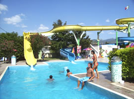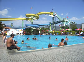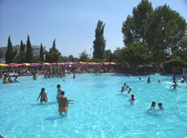 There is a "restaurant" within the waterpark that serves the equivalent of Italian junk food, bread rolls with cheese, ham, mozarella, parma ham, mortadella, hamburgers, hotdogs and the perennial cornerstone of any diet, chips. The prices are not cheap but well within the accepted boundaries of eating on site. Cold drinks, ice creams, crisps and the Italian equivalent of slush puppies ("Granite" [pr. Gran-eat-ay]) are readily available. As is becoming frequent place, you queue up to pay for the food, then take the receipt to the food till where your order is bought to you. This method serves a dual purpose, one is to stop the people preparing and cooking food from handling money and also to ensure that food order mistakes are minimalised.